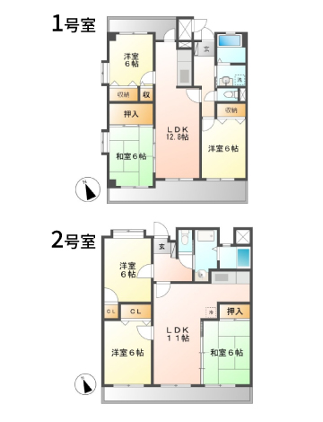 2号室:70.07㎡ 5号室:79.2㎡ - 間取り
